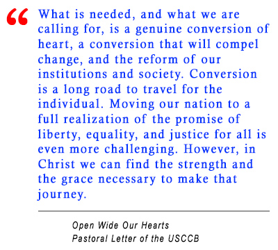 The full text of Open Wide Our Hearts is available at www.usccb.org/issues-and-action/human-life-and-dignity/racism/upload/open-wide-our-hearts.pdf
