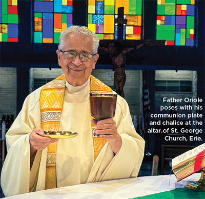 Father Oriole continues to serve. In retirement, he is part of the St. George Parish community in Erie, where he celebrates daily Mass, helps on weekends and fills in across the diocese when needed.