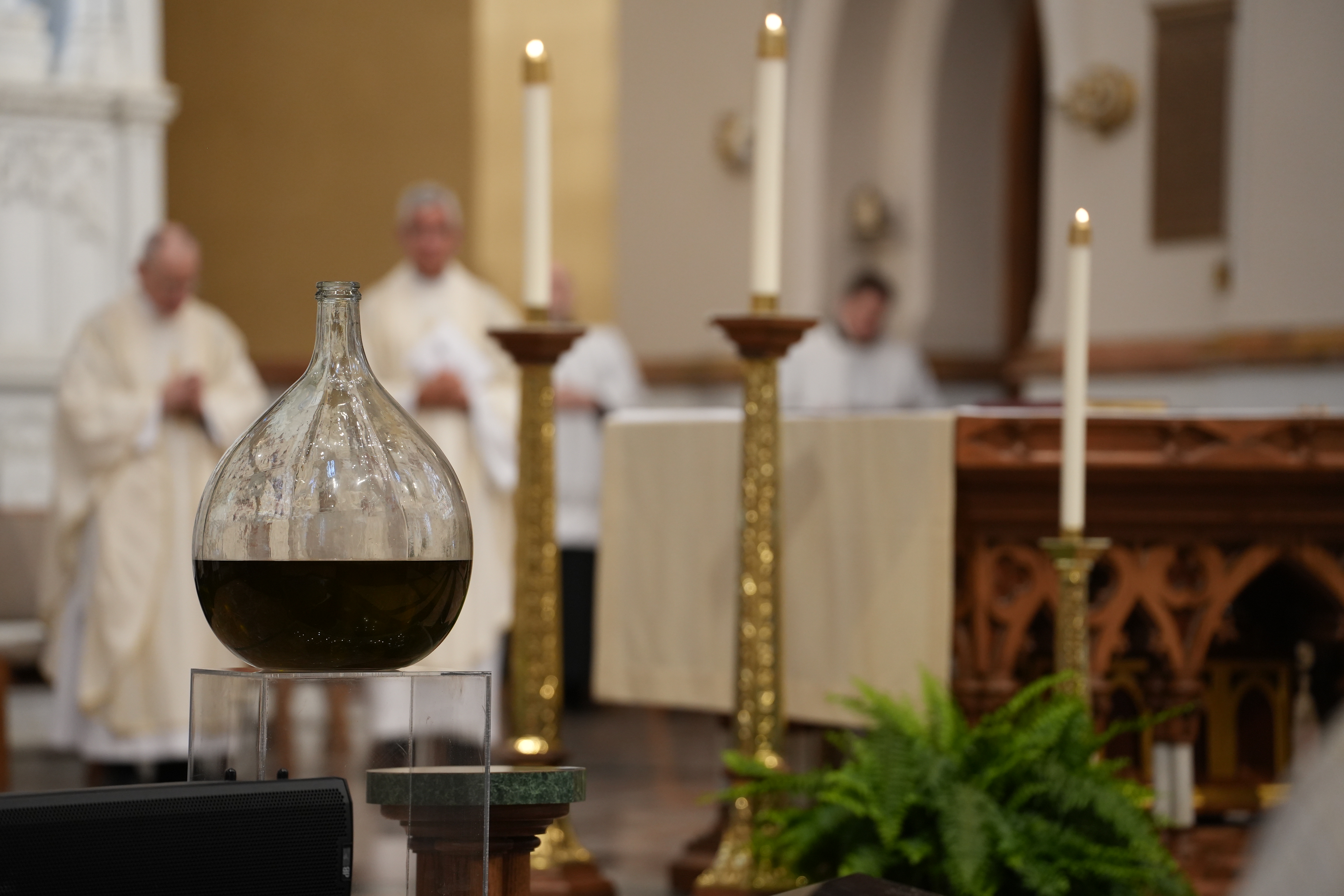 During the Chrism Mass, three sacred oils are blessed and consecrated: the Oil of the Sick, the Oil of Catechumens and the Sacred Chrism. These oils will be used in baptisms, confirmations, ordinations and the anointing of the sick in every parish across the diocese.