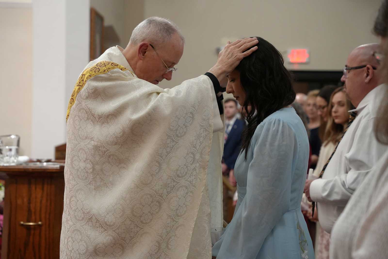 During the celebration, Father Michael Ferrick, pastor of Saint Peter Cathedral, baptized five catechumens. Together with two candidates, they were confirmed and received the Eucharist, becoming fully initiated members of the Church.