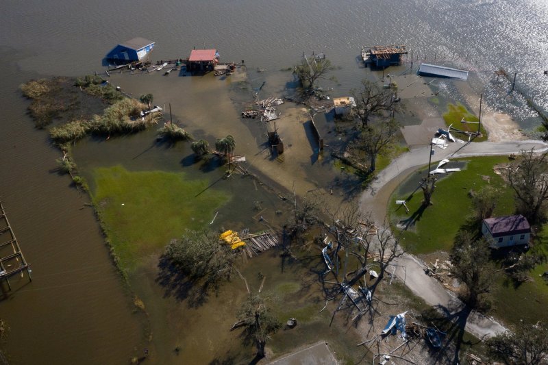Homes near Hackberry, La., are immersed in water in the aftermath of