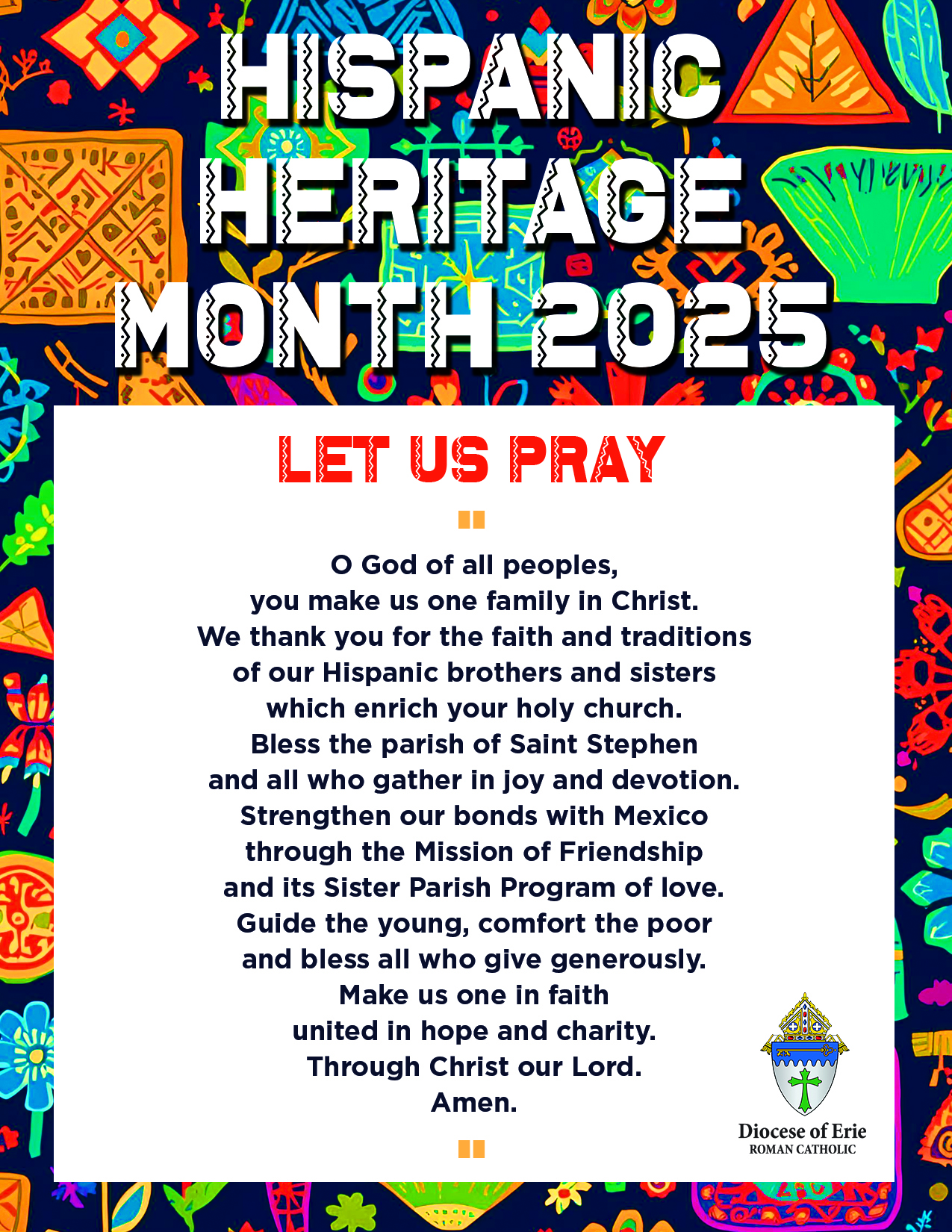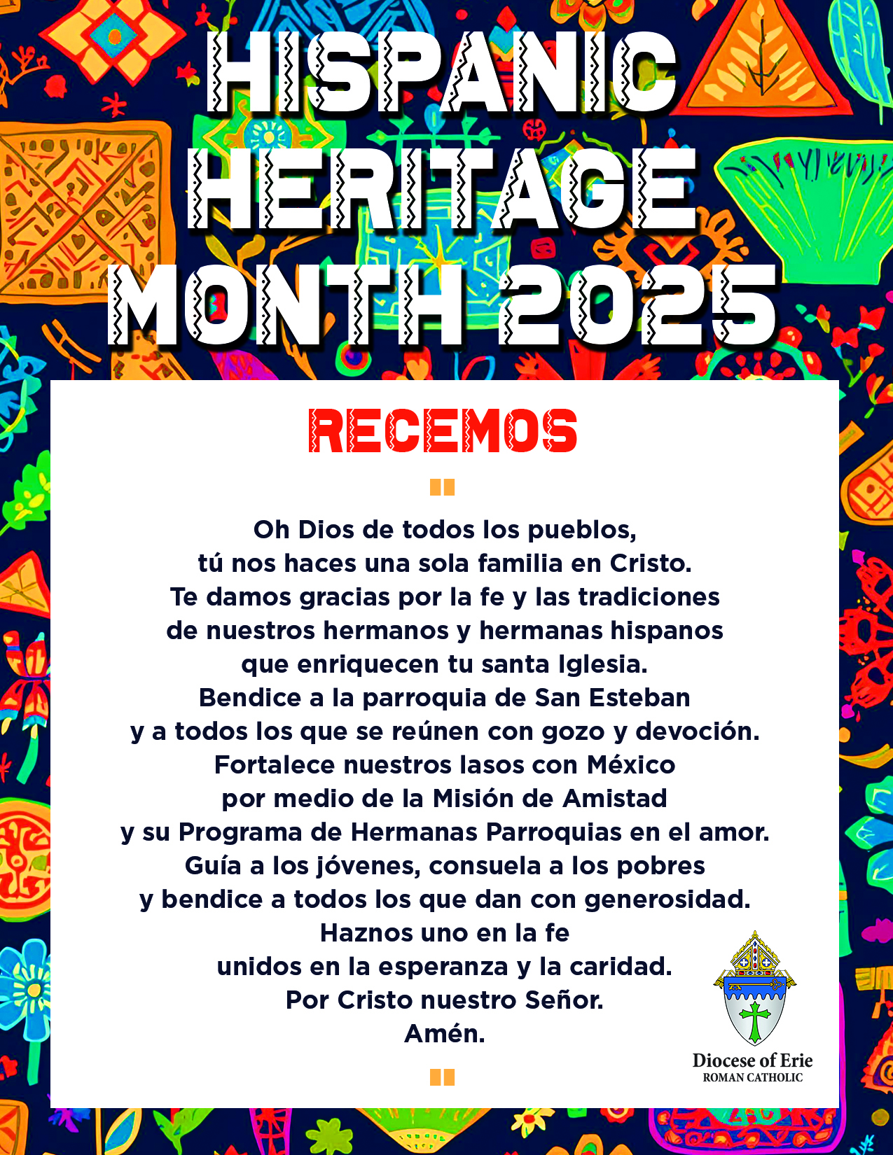 We encourage everyone in the Diocese of Erie to take part in this month of celebration, not only by reflecting on the cultural contributions of Hispanic Americans, but by supporting the missions that bring us together as one family in faith.