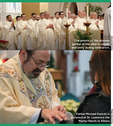 For Father Michael Kesicki—pastor of St. Lawrence the Martyr Parish in Albion with its mission church St. Philip in Crossingville, chaplain at State Correctional Institution Albion, and continuing chaplain at Gannon University—the Chrism Mass is a special moment: it provides the oils for celebrating the sacraments and expresses unity with the bishop and diocese as priests renew their priestly promises.