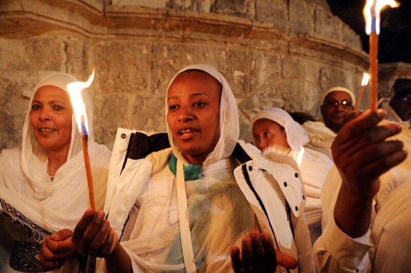on Holy Saturday in the Church of the Holy Sepulcher in the Old City of