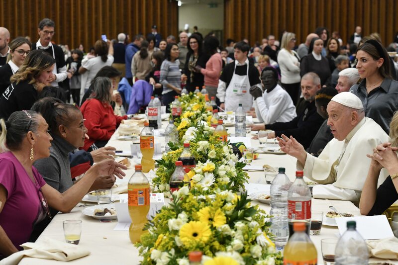 Among the 5,000 who filled the basilica for Mass were homeless persons and other people in need who were seated in the front rows near Pope Francis. After celebrating Mass and praying the Angelus, the pope ate lunch in the Vatican audience hall with some 1,250 people, continuing a tradition he began on the first World Day of the Poor in 2017.