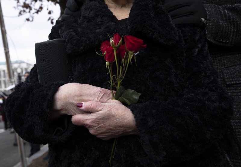 holds flowers during the March for Life rally Jan. 29, 2021.